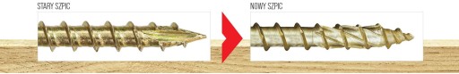 - PODWÓJNY GWINT Dodatkowe zwoje na szpicu ułatwiają wkręcanie - pozwalają na szybsze "złapanie" drewna przy mniejszej sile docisku.