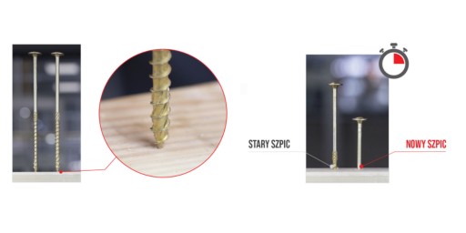 Współpraca z wykonawcami pozwoliła zaprojektować innowacyjny szpic wkrętów ciesielskich tak, aby ułatwiały montaż, ale także charakteryzowały się wysokimi parametrami wytrzymałościowymi takimi jak: wytrzymałość na wyrywanie, ściskanie itp.