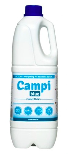 Campi Blue to skoncentrowany płyn, rozkłada zawartość w zbiornikach na fekalia w przenośnych toaletach oraz stałych urządzeniach toaletowych w przyczepach kempingowych i na jachtach.