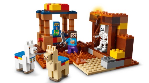 - Wszechstronny i praktyczny zestaw LEGO® Minecraft™ 21167 Punkt handlowy zawiera mnóstwo kultowych postaci i elementów znanych z gry: wydobywanie, eksplozje, tajemniczego handlarza, wrogi szkielet i dwie lamy biegające na wolności!