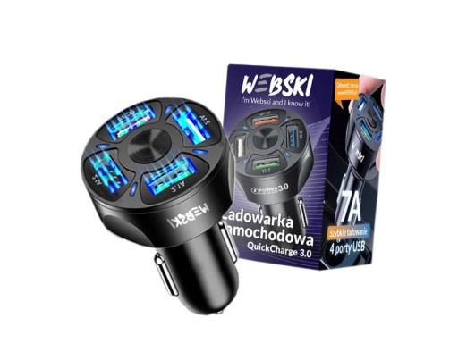 Ładowarka samochodowa Webski Quick Charge 3.0 z czterema portami USB