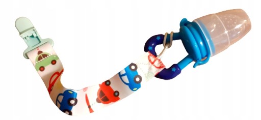 - Klips służy do zapięcia na szelkach wózka, ubraniu dziecka, kocyku itp. Produkt przeznaczony jest do produktów z obręczą [smoczek, kubek, gryzak, zabawka]
