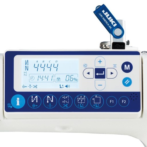 Urządzenie ma wbudowane dwa porty USB oraz oświetlenie LED. Producenci wyposażyli też stebnówkę JUKI DDL-8000A-MS w system wskazówek głosowych (operator maszyny jest np. informowany o konieczności dolania oleju, prędkości maszyny czy jej wydajności).