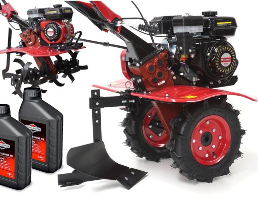 ✅ W komplecie z glebogryzarką są: Koła gumowe 400-8, metalowe osłony zespołu roboczego, pług, konsola, ogranicznik głębokości, noże