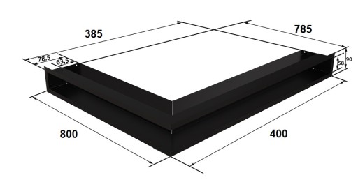 Zestaw 3 szt kratek kominkowych typu luft 45S narożny 800x400x90 do kominka z szybą boczną prawą - kolor czarny - 2szt GÓRA i 1szt DÓŁ SF