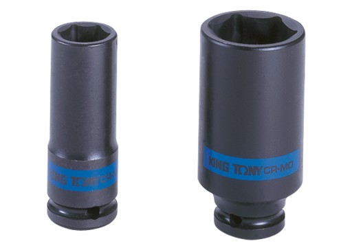 Cienkościenna nasadka udarowa 1/2" King Tony. Nasadka długa, 6-kątna w rozmiarze 13mm x 80mm (rozmiar x całkowita długość nasadki). Nasadka wykonana ze stali chromowo molibdenowej.