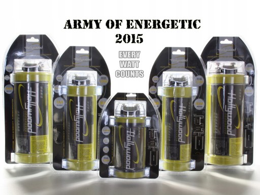 Głównym zadaniem kondensatorów buforowych Hollywood Energetic jest gromadzenie i przechowywanie energii, która w razie potrzeby, może być z niego szybko pobrana i wykorzystana do wspomagania instalacji zasilającej samochodowy wzmacniacz mocy. Najczęściej ma to miejsce podczas głośniejszego słuchania muzyki zawierającej mocniej wyeksponowane impulsy basowe, przy odtwarzaniu których dochodzi do chwilowego, ale za to znacznie większego poboru prądu przez wzmacniacz, co najczęściej skutkuje wahaniami i spadkami napięcia w instalacji zasilającej system car audio. Takie chwilowe niedobory energii i spadki napięcia mają niekorzystny wpływ na stabilność pracy i parametry wzmacniacza, czego skutkiem może być pojawienie się większej ilości zniekształceń w odtwarzanym sygnale audio. Te chwilowe niedostatki energii w instalacji zasilającej mogą być częściowo uzupełniane i równoważone zapasem zgromadzonym w kondensatorze. W efekcie tego, minimalizowane są skutki impulsowych spadków i wahań napięcia zasilającego wzmacniacz, przez co stabilizują się jego warunki pracy przekładające się w efekcie na lepszą jakość odtwarzanego dźwięku. Należy też wyraźnie podkreślić, że żaden kondensator nie jest dodatkowym źródłem zasilana, ani urządzeniem służącym do łagodzenia lub niwelowania skutków źle zaprojektowanej lub niepoprawnie wykonanej instalacji zasilającej system car audio. Kondensator buforowy pełni jedynie rolę wspomagającego banku energii przechowując jej ograniczoną porcję, która w razie potrzeby może zostać szybko uwolniona i wykorzystana przez wzmacniacz, przede wszystkim podczas krótkotrwałych impulsów o wyższym zapotrzebowaniu prądowym. W porównaniu do nawet najlepszego akumulatora, kondensatory Hollywood Energetic posiadają bardzo niską szeregową rezystancję wewnętrzną (ESR), co sprawia, że impulsowy transfer energii z kondensatora do wzmacniacza (i z instalacji do kondensatora, podczas jego ładowania) odbywa się bardzo szybko, dzięki czemu kondensatory Hollywood Energetic spełniają również rolę urządzeń dodatkowo wspomagających i odciążających pracę akumulatora podczas szybkozmiennych impulsów prądowych, które zazwyczaj niekorzystnie wpływają na ogólną żywotność każdego akumulatora. Dodatkowo, kondensatory Hollywood Energetic stabilizują i wygładzają (filtrują) impulsowe przepięcia oraz zakłócenia pojawiające się w instalacji zasilającej pojazdu.