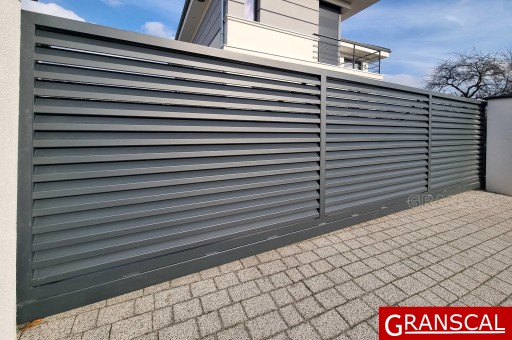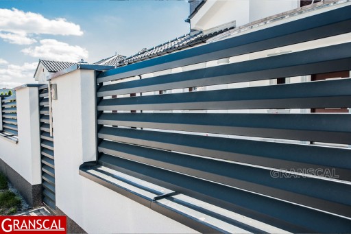 Żaluzjowy charakter ogrodzenia - dający większą widoczność od strony ogrodu jednocześnie dając poczucie prywatności od strony ulicy.