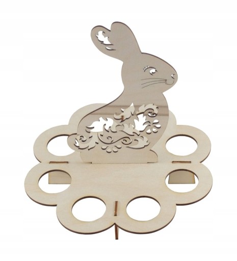 Drewniany stojak na jajka wielkanocne,jest bardzo praktyczny a zarazem dekoracyjna ozdoba Twojego stołu,drewniany zając w stylu rustykalnym wypełni Twoje wnętrze ciepłą atmosferą w klimacie Wielkanocnym.Posiada miejsce na 8sztuk pisanek.Drewniany pojemnik,organizer na żywność możesz samodzielnie ozdobić,malując go na dowolny kolor lub wykonać techniką decoupage.