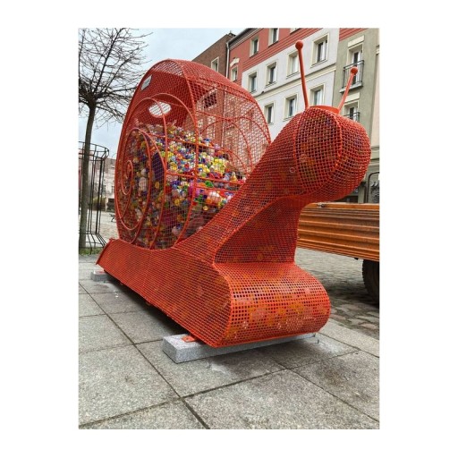 Pojemnik posiada dwie wrzutnie na kapsle, wyżej i niżej. W ogonie ślimaka znajdują się drzwiczki zamykane na kłódkę, które po otworzeniu umożliwiają opróżnienie uzbieranej zawartości.