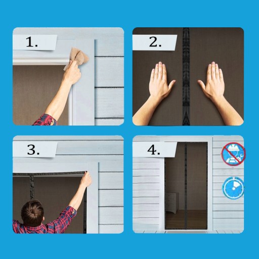 - Magnetyczne zapięcie ( 14 sztuk dużych i mocnych magnesów ) sprawia, że moskitiera automatycznie się otwiera i zamyka.