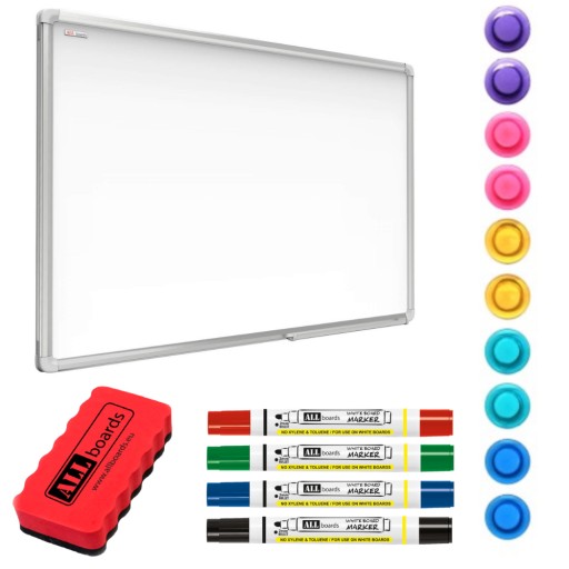 - ZESTAW - wraz z tablicą w zestawie znajdziemy kompletne wyposażenie pozwalające na natychmiastowe użytkowanie: zestaw montażowy, półkę na akcesoria, gąbkę, zestaw magnesów oraz zestaw markerów.