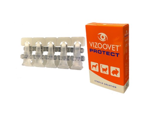 - Produkt w dziesięciu ampułkach o pojemności 0,6 ml zawierających idealnie odmierzoną dawkę VIZOOVET Protect