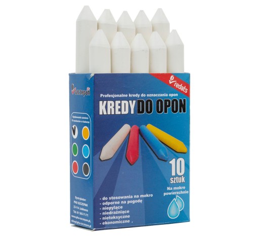 Kredy do opon firmy REDATS są znane ze swojej trwałości i skuteczności w oznaczaniu opon suchych, mokrych czy zabrudzonych. Napis na ogumieniu jest bardzo trwały - zmyć go można wyłącznie rozpuszczalnikiem nitro. Co ważne, nawet wysokie temperatury nie stanowią przeszkody - potwierdzona skuteczność nawet w 400 °C.