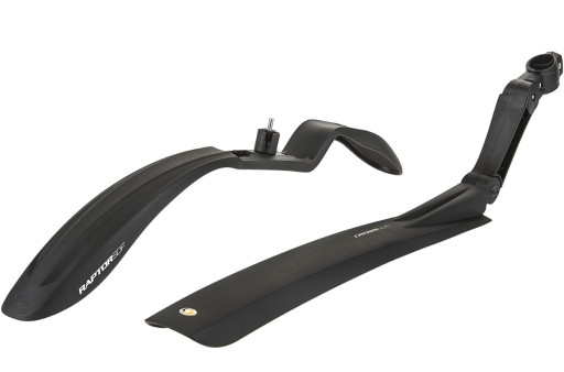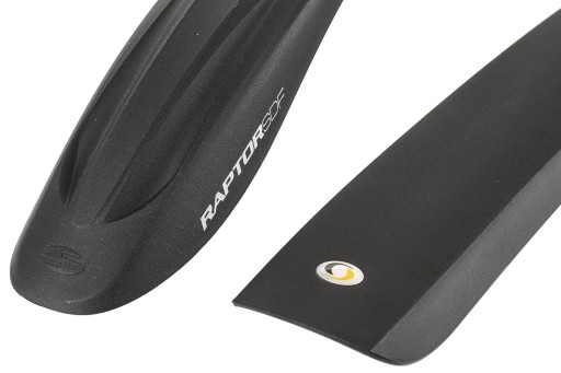 Błotniki RAPTOR jak sama nazwa wskazuje stworzone zostały z myślą o prawdziwych drapieżcach. Błotnik przedni RAPTOR SDF możemy zamontować go zarówno do amortyzowanych widelców, montowany jest wówczas na podkowie amortyzatora, jak również sprawdzi się przy klasycznych rowerach. RAPTOR SDF podczas jazdy skręca wraz z kołem dzięki temu jego płetwa cały czas znajduje się w niewielkiej odległości od opony zapewniając optymalną ochronę podczas jazdy w każdym terenie. Uniwersalność błotnika tylnego RAPTOR SDR została osiągnięta dzięki zamocowaniu na rurze pod siodłowej lub poniżej na ramie za pomocą specjalnej obejmy skręcanej śrubami oraz podwójnego przegubu, który umożliwia idealne dopasowanie błotnika do ergonomii ramy i koła. Szeroka płetwa zapewnia maksimum ochrony podczas jazdy w każdym terenie. Błotniki zostały zaopatrzone w elementy odblaskowe poprawiające widoczność i bezpieczeństwo rowerzysty.