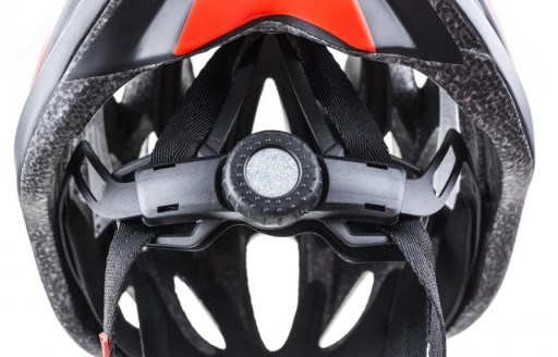 Dla dodatkowego zabezpieczenia rowerzysty z tyłu kasku umieszczone zostały odbijające światło naklejki.