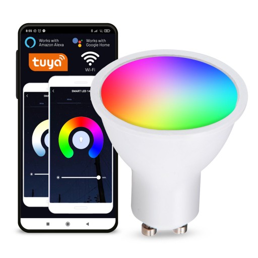 Inteligentna żarówka LED WIFI RGB+W 5W, Trzonek Gu10, 2700K-6500K, Tuya GOOGLE ALEXA