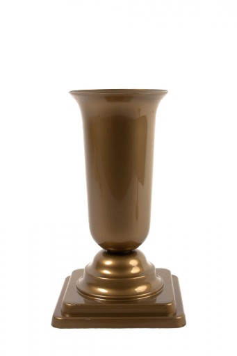 Oferta przedstawia wazon / flakon na podstawce w kolorze złotym, wykonany z wysokiej jakości tworzywa sztucznego. Produkt doskonały do kompozycji nagrobnych.