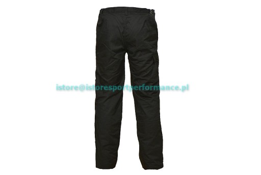 Spodnie są odporne na kontakt z dziką roślinnością, tkanina bawełna/poliester jest bardzo wytrzymała na przetarcia, spodnie szyte bardzo wytrzymałą nicią, posiadają podwójne szwy w kroku oraz podwójnej grubości materiał na kolanach. Półelastyczny ściągacz w pasie zapewnia dobre trzymanie i sprawia, że spodnie pasują na każdą sylwetkę. Spodnie posiadają dwie kieszenie po bokach na ręce oraz jedna z boku z zapinaną klapką. Spodnie są lekkie i wygodne ich waga to 510 g w rozmiarze L.