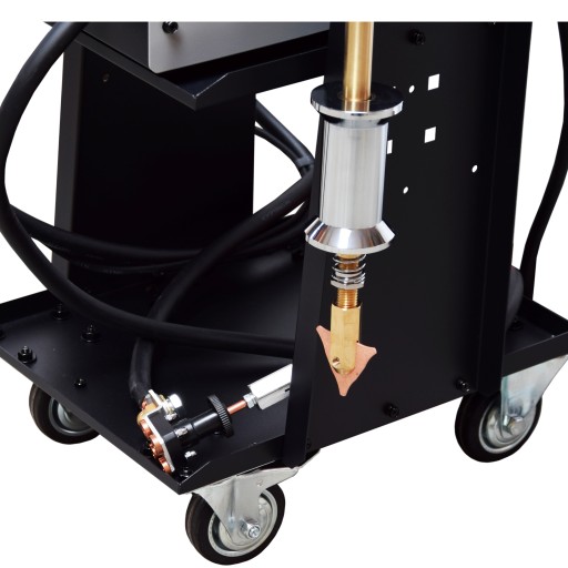 Młotek wyposażony jest w gniazdo do wkręcania elektrody zastępującej trójkąt . Jest ona wykonana ze specjalnego materiału który ogranicza klejenie się do niej stali i zapewnia bardzo dobrą jakość zgrzewu.