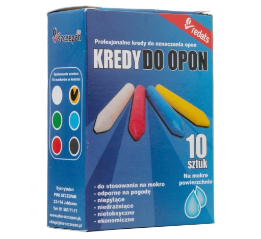Kredy do opon firmy REDATS są znane ze swojej trwałości i skuteczności w oznaczaniu opon suchych, mokrych czy zabrudzonych. Napis na ogumieniu jest bardzo trwały - zmyć go można wyłącznie rozpuszczalnikiem nitro. Co ważne, nawet wysokie temperatury nie stanowią przeszkody - potwierdzona skuteczność nawet w 400 °C.