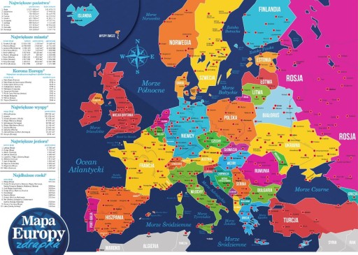 Mapa zdrapka Europa pomoże w odkrywaniu tych zakątków, które będą kształtować duszę podróżnika. Jej unikatowe zastosowanie w postaci zdrapki przysporzy mnóstwo przyjemności, kiedy zadowoleni wracając z wyprawy będziecie mogli zaznaczyć kolejne odkryte miejsce.
