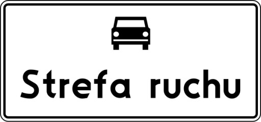 Znak D-52 „strefa ruchu" stosuje się w celu oznakowania ustalonej strefy ruchu. Znak ten umieszcza się na wszystkich wjazdach do strefy ruchu.