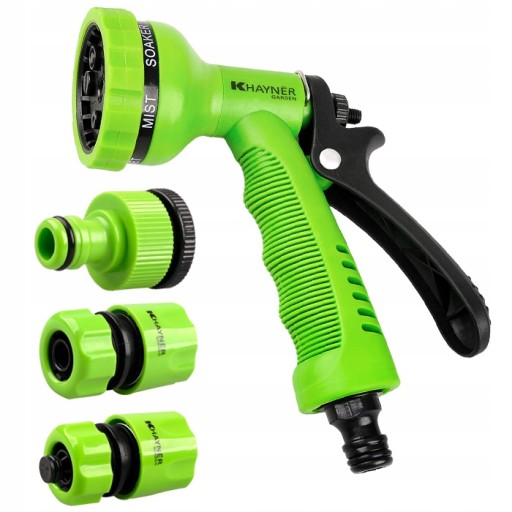 - pistolet zraszający 6-funkcyjny: prysznic, mgła, krople, strumień wąski mocny, strumień płaski kątowy, strumień stożkowy