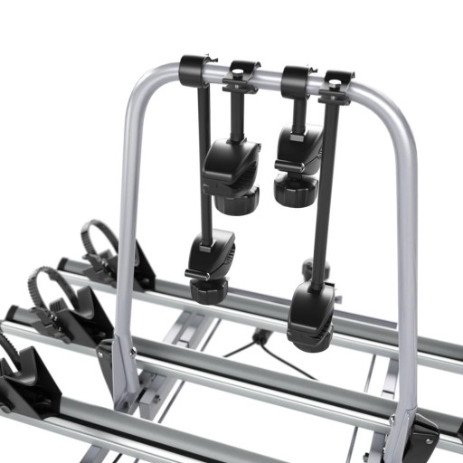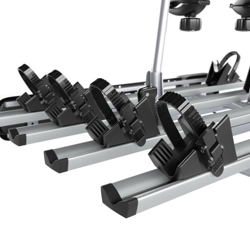 - Bagażnik umożliwia wygodny transport czterech rowerów, a mocna konstrukcja ze stali i aluminium gwarantuje jego wytrzymałość i trwałość oraz elegancki wygląd