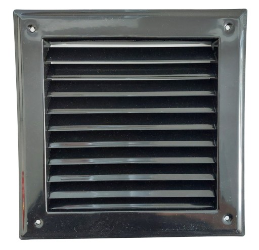 Osłona wentylacyjna ścienna z żaluzją o stałym kącie pochylenia, przeznaczona do estetycznego zakończenia oraz zabezpieczania kanałów wentylacyjnych w systemach wentylacji nawiewnej, wywiewnej, klimatyzacji i rekuperacji.