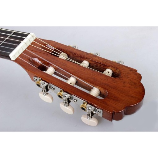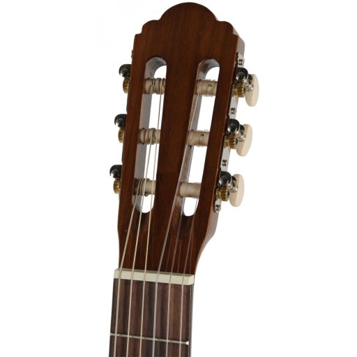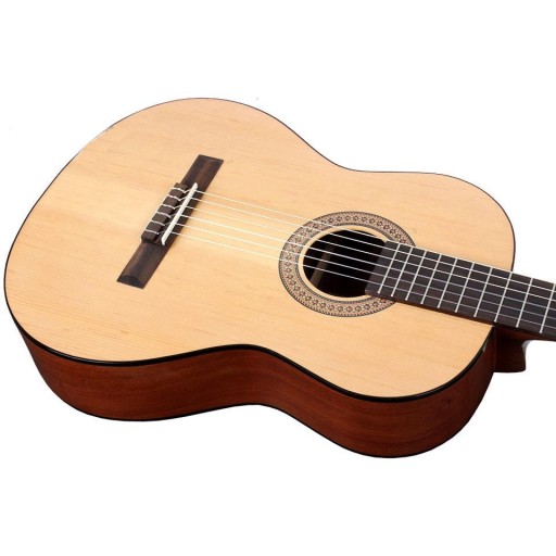 Miguel Esteva „Natalia” jest jednym z tych instrumentów, który od pierwszego kontaktu potrafi zachwycić. Precyzyjne wykonanie przy użyciu dobrego jakościowo drewna, dobre brzmienie i komfort gry. Gitara śmiało może konkurować z instrumentami z wyższej półki cenowej. Dzięki połączeniu świerkowej płyty wierzchniej i korpusu wykonanego z mahoniu brzmienie jest ciepłe, ale także bardzo wyraziste. Basy nie dudnią a górne pasmo nie jest zbyt ostre. Gitara często polecana przez nauczycieli gry, świetnie sprawdzi się jako pierwszy instrument do nauki i dla osób średnio zaawansowanych. Na uwagę zasługuje także klasyczny elegancki wygląd - Natalia jest po prostu piękna i nawet najbardziej wyczuleni esteci będą zachwyceni.