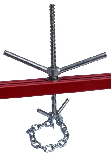 Belka posiada płynną regulacje podpór w trzech płaszczyznach. W standardowym wyposażeniu znajdują się dwa haki z łańcuchami oraz zapięciami. Haki, oparte na łożyskach oporowych, wykręcają się lekko i precyzyjnie. Łożysko oporowe jest niezbędne przy podnoszeniu i opuszczaniu większych ciężarów.
