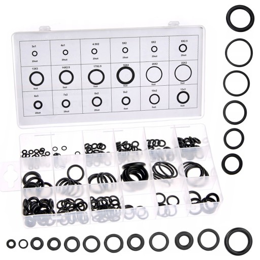 Wysokiej jakości uszczelki olejoodporne. Komplet 225 sztuk w 18 różnych rozmiarach. Uszczelki do zastosowanie podczas prac hydraulicznych, niezbędne przy wykonywaniu łączeń gwintowanych oraz naprawie samochodów. Oringi umieszczone są w sortowniku z tworzywa zaopatrzonym w przegródki - są posortowane wedle poszczególnych rozmiarów.
