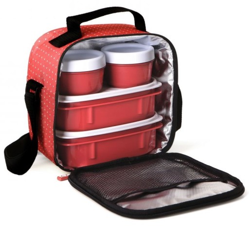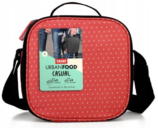 Torba termiczna z 4 pojemnikami - Czerwona w kropki Półsztywna Casual TATAY