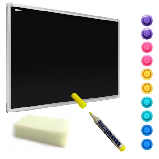 - MODNA I PRAKTYCZNA - czarna tablica jest nie tylko funkcjonalna, ale także elegancka. Znakomicie komponuje się z wystrojem mieszkania lub biura. Jest też świetnym pomysłem do pokoju dziecięcego.