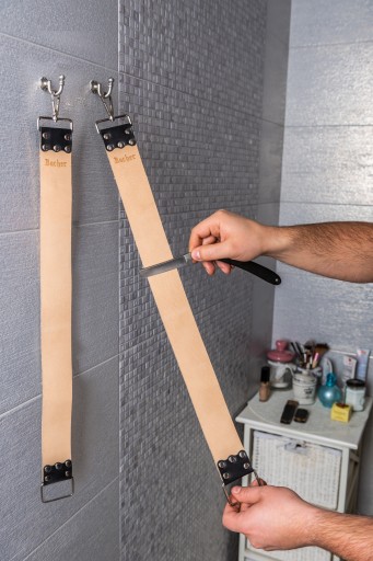 - Możliwe jest ostrzenie brzytwy na pasie przy pomocy past polerskich.