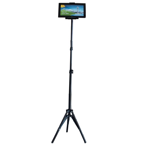 W zestawie znajduje się lekki i bardzo poręczny statyw fotograficzny z głowicą zakończoną standardowym gwintem 1/4 cala oraz kompatybilny uchwyt do telefonu lub tabletu