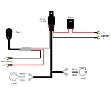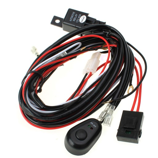 Kompletny zestaw montażowy do lamp roboczych, paneli, modułów oraz Lightbarów LED. Wyposażony w bezpiecznik, przekaźnik oraz manualny włącznik z diodą. Zasilanie 12V.