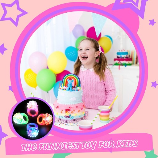 4 Pieces Light Up Flashing Rings Glow in The Dark Rings Colorful LED Glow Rings Bumpy Jelly Rubber Novelty Rings Finger Lights Toys for Kids Adults Light Up Parties Raves Concert Shows Favors