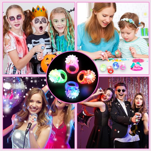 Ilość w opakowaniu: otrzymasz 4 sztuki migających ledowych wyboistych gumowych pierścieni, które odpowiednio migają światłem czerwonym, niebieskim, zielonym i różowym, dostępna jest wystarczająca ilość, aby podzielić się z innymi, noszenie ich pomoże ci wyróżnić się na imprezach Niezawodny i wysokiej jakości materiał: nasze świecące zabawki w kształcie pierścieni są wykonane z miękkiego silikonu, wysokiej jakości i mocne, niezawodne i lekkie, przyjazne dla skóry i niełatwe do odkształcenia lub złamania, dostępne, aby służyć ci przez długi czas i zapewnić przytulność uczucie dotyku Łatwy w użyciu: te wyboiste, podświetlane pierścienie są łatwe w użyciu, wystarczy nacisnąć środek, aby je włączyć i ponownie nacisnąć, aby wyłączyć, a każdy pierścień można nakładać do 24 godzin, co jest idealnym upominkiem na przyjęcie zarówno dla dzieci, jak i dorośli ludzie Odpowiednie okazje: świecące w ciemności pierścienie dla dzieci są idealnymi akcesoriami na przyjęcia urodzinowe, rave'y, parki rozrywki, karnawały, koncerty, występy sceniczne, tańce, imprezy na Halloween lub festiwale, łatwe do przyciągnięcia uwagi innych Śmieszne prezenty: te świecące pierścienie mogą nie tylko służyć jako upominki na przyjęcia, ale także jako nowatorskie gadżety, które można podarować swoim dzieciom, przyjaciołom, rodzinie