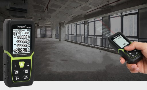 Cyfrowy dalmierz laserowy Huepar obsługuje różne tryby pomiaru, w tym odległość, powierzchnię, objętość i pomiar Pitagorasa.