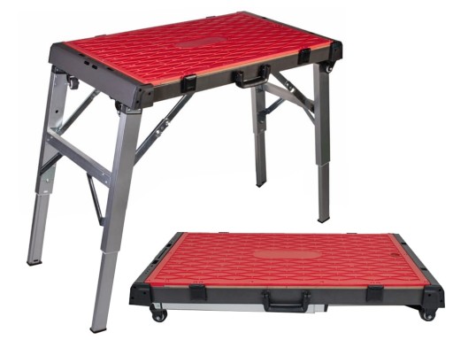 W RUBI nie tylko troszczymy się o zaprojektowanie, wyprodukowanie i dostarczenie najlepszych narzędzi niezbędnych podczas układania płytek ceramicznych. Myślimy również o dodatkach i akcesoriach, jakie mogę być użyteczne dla profesjonalnych glazurników.Dzięki temu RUBI oferuje teraz nowy składany wielofunkcyjny stół roboczy. Nasz stół jest idealny do prac instalatorskich, remontowych, wykończeniowych i naprawczych zarówno w branży budowlanej, jak i w innych.Roboczy stół składany spełnia 4 role: stół roboczy, rusztowanie, wózek i leżak.Możliwość złożenia oraz niewielka waga (14,2 kg) ułatwiają transport i przechowywanie stołu.Stół wyposażony jest w dwustronny blat. Jedna strona, wykonana z płyty MDF, sprawdza się przede wszystkim jako stół roboczy. Ma nadrukowany liniał i kątomierz, oraz przygotowany otwór ułatwiajacy wykonywanie nawierceń o średnicy do 25 mm. Druga strona wykonana jest ze specjalnego antypoślizgowego tworzywa i doskonale sprawdza się w pozostałych zastosowaniach.Stół jest bardzo stabilny dzięki zastosowaniu w jego konstrukcji stali i aluminium. Zachowuje jednocześnie lekkość i wytrzymałość.Nogi stołu posiadają stopień ułatwiający wchodzenie i schodzenie w trybie rusztowania.Powierzchnia robocza o wymiarach 80 x 47 cm może być ustawiona na dwóch wysokościach: 55 i 80 cm.Stół w trybie wózka lub leżaka bardzo łatwo się prowadzi dzięki 4 kółkom, z których 2 są skrętne.Maksymalny udźwig stołu w trybie wózka i leżaka to 150 kg, a w trybie rusztowania i stołu roboczego - 200 kg.