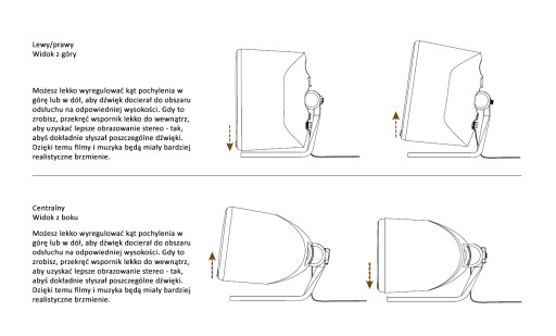 Głośniki można używać do stereo lub głośnik centralny posiada uchwyty do zawieszenia na ścianie lub postawić na podstawce jak pokazana na zdjęciu .