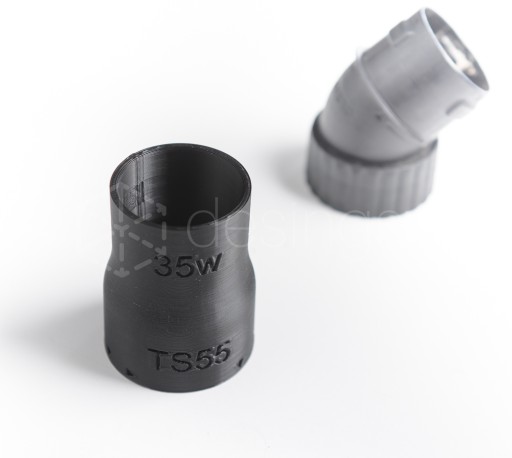 Drukowany adapter, który umożliwia podłączenie końcówki w standardzie 35 do elektronarzędzia TS 55 REBQ firmy Festool.