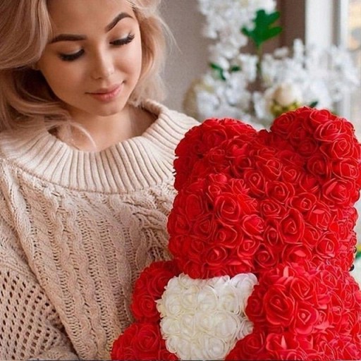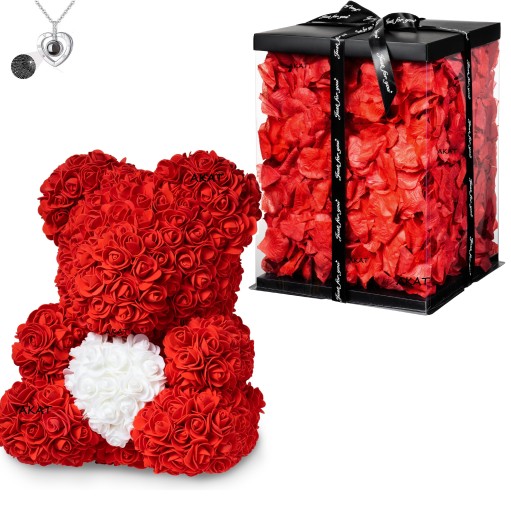 Miś z Róż! CZERWONY Z BIAŁYM SERCEM