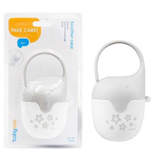 Pojemnik na smoczek w kształcie Słonika to praktyczny produkt podczas wszelkich podróży. Ochroni smoczek dziecka przed zabrudzeniami, jest wygodny w użyciu i łatwy do zamocowania. Elastyczna trąba pozwala na przymocowanie pojemnika do wózka, fotelika lub torby spacerowej. Wykonany z bezpiecznych materiałów, nie zawiera Bisfenolu A.