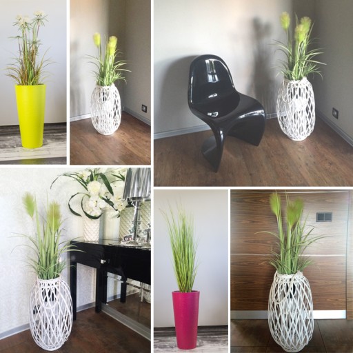 Łatwe w czyszczeniu. Mogą nam służyć przez lata wprowadzając spokój zieleni dzięki naturalnemu odwzorowaniu wyglądu naturalnych roślin. Trawa dostarczana jest w całości w doniczce.