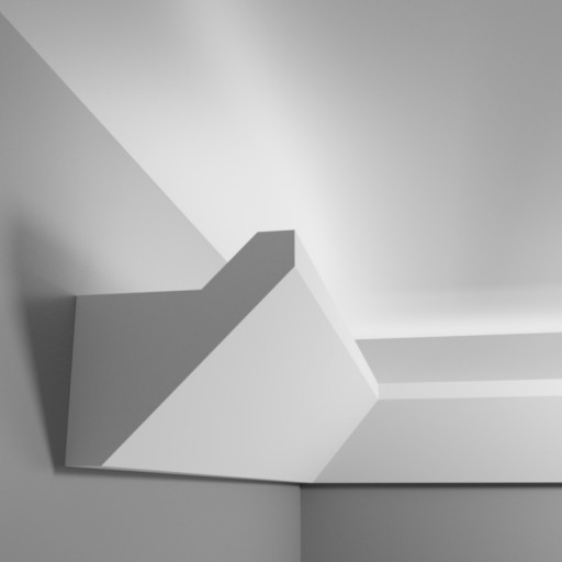 Gzyms oświetleniowy LED XPS z serii GM to nowoczesny element sztukaterii w postaci listwy dekoracyjnej, którego największym atutem jest prosty, a jednocześnie przyciągający uwagę wzór. Gzyms jest przyklejany do sufitu w niewielkiej odległości od ściany. Produkt jest lekki i niezwykły łatwy w montażu. Istnieje możliwość przyklejenia do gzymsu taśmy LED w trzech płaszczyznach. Wycięcie gzymsu w kształcie litery „V” umożliwia skierowanie źródło światła w dół lub w górę. Dzięki temu niezwykle praktycznemu rozwiązaniu możliwe jest podświetlenie ściany lub sufitu w zależności od preferencji i upodobań użytkownika. W połączeniu z odpowiednio dobranym źródłem światła gzyms daje niepowtarzalny efekt aranżacji wnętrza. Ponadto zastosowanie produktu zmienia optycznie wielkość pomieszczenia oraz maskuje wszelkie ścienne niedoskonałości, takie jak np. pęknięcia powstałe w miejscu łączenia sufitu ze ścianą. Równocześnie gzyms jest niezastąpionym elementem dekoracyjnym - doskonale sprawdza się zarówno w mniejszych jak też w większych pomieszczeniach, nadając im elegancki styl oraz ciepły i przytulny charakter. Idealnie komponuje się zarówno z klasycznymi jak i nowoczesnymi wnętrzami.