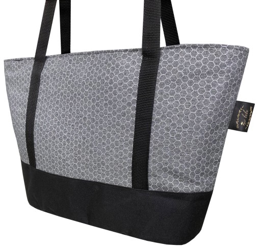 Poniżej znajdują się zdjęcia poglądowe prezentujące torbę. W obecnej ofercie jest w sprzedaży wzór srebrne plastry miodu na graficie.