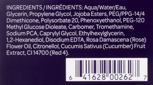 Zawiera mikrosferyczne koraliki Jojoba, które są zmieszane z nawilżającym Absolutem Róży, aby delikatnie wygładzić powierzchnię skóry, a Wyciąg z Ogórka łagodzi i odświeża.